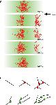 Figure 4. Autocatalytic MT production, dynamic instability, and a RanGTP gradient render MT super-structures robust toward external perturbations. A. The MT super-structure can regenerate within a RanGTP gradient. A fully assembled MT super-structure (top) is divided in two, and one half is moved 20 µm to the right. As MTs disassemble due to dynamic instability, new MTs are produced preferentially in the centre of the gradient. Thereby the severed half disintegrates over time and the integrity of the MT super-structure is re-established. B. Time series of two different mechanisms to achieve autocatalytic MT production. The top series shows a nucleator (red) binding to MTs where it becomes activated and nucleates new MTs. The bottom series shows a MT severing protein (green) binding to MTs and cutting them into fragments. These fragments can grow into new MTs.