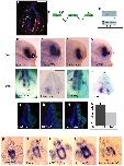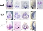 Fig. 3. Expression of X. tropicalis TLEs. Expression patterns of TLE1, TLE2, AES and FoxG1 as shown by whole-mount in situ hybridisation of X. tropicalis embryos at neural plate stage (st. 16; frontal view), early tailbud (st. 22-23; frontal view), and late tailbud (st. 28; lateral view). TLE1 and TLE2 show expression throughout the anterior neural plate (st. 16), but TLE1 is strongest in the anterior neural ridge (black arrow), whereas TLE2 is strongest in a more medial ridge (black arrow). Note the expression of TLE1, but not TLE2, in the forebrain of st. 28 embryos, which largely overlaps with the telencephalic expression of FoxG1 (telencephalon indicated by red arrowheads). Ey, eye; m, midbrain; h, hindbrain; ba, brancial arches; di, diencephalon; ov, otic vesicle.