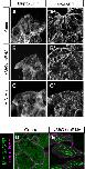 Fig. S6. Subcellular localization of Mig12-GFP. (A-Câ²) Transverse sections through the neural plate of embryos injected with mRNA for Mig12-GFP (25 pg), stained with anti-GFP and anti-α-tubulin antibodies. The co-injection of xMID1 mRNA (250 pg, B) or xMID-Mo (C) with Mig12-GFP mRNA had no obvious effect on the subcellular localization of Mig12-GFP. (D,E) Confocal images of animal cap cells from embryos injected with Mig12-GFP mRNA (100 pg) and mRNA for membrane-bound mRFP (mem.-RFP, 250 pg), explanted on fibronectin-coated glass-bottom dishes. (E) The co-injection of xMID1 mRNA (500 pg) with Mig12-GFP mRNA induced the relocation of the Mig12-GFP to the microtubules.