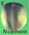 cdh2 (cadherin 2, type 1, N-cadherin (neuronal))gene expression in Xenopus laevis embryos, NF stage 15, assayed by in situ hybridization. dorsal view, anterior up.
