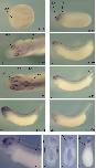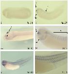 The spatial expression of these genes in the embryo was assessed by two different complementary techniques. In situ hybridisation allows the identification of domains of high expres- sion of genes; RT-PCR on the other hand identifies regions of both high and low expression domains in dissected embryos. In situ hybridisation was performed on embryos from stage 6 to stage 40/41 with specific antisense probes (see Supplementary Table 3). Sense probes were used as controls.