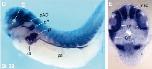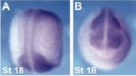 sfxn1 () gene expression in Xenopus laevis embryo, assayed via in situ hybridization, NF stage 18, Image on left: dorsal view, anterior down. Image on Right: anterior view, dorsal up..