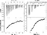 Figure 1. Isothermal titration calorimetry of the HSAF interaction with either 1 (left) or propofol (right), using sequential titrations. More sigmoid shaped curve with propofol indicates higher affinity, consistent with the values given in Table 2.