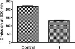 Figure 3. Photo-occlusion experiment. In order to confirm that fluorescence competition was not due to inner filter or other nonspecific interactions between 1-AMA, 1, and HSAF, the protein was photoadducted by 1/UV, washed, and then evaluated for 1-AMA binding via fluorescence enhancement. The photoadducted sample had significantly reduced 1-AMA binding compared to the UV control, consistent with adduction in the 1-AMA anesthetic binding site.