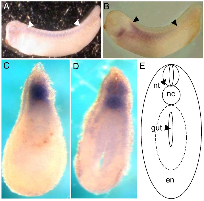 the major anatomical features. en, endoderm; nc, notochord; nt, neural tube.