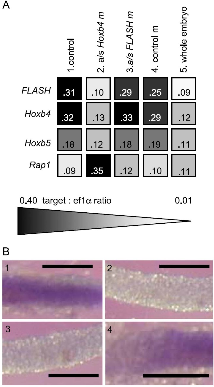 alone (1), with an antisense Hoxb4 morpholino (2), an antisense FLASH