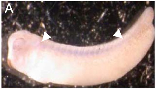 embryos, dorsal top and posterior to right. The arrowheads mark the limits
