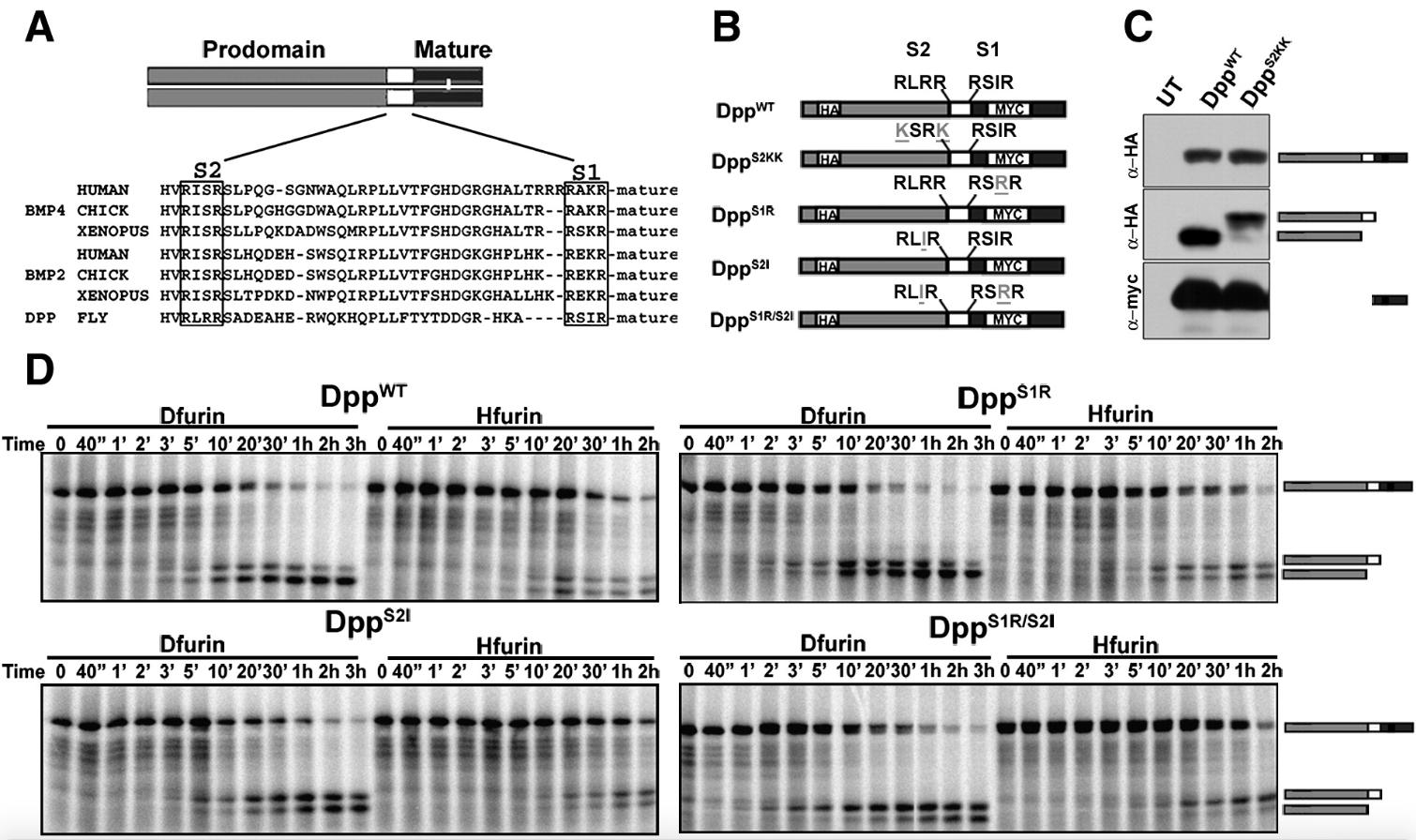 The Drosophila DPP signal is produced by cleavage of its proprotein at evolutionary diversified furin-recognition sites.