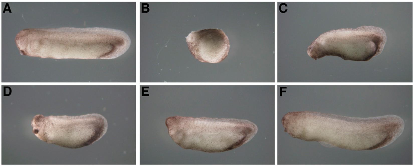 Fig. S2. Dorsal overexpression of Xfurry. (A) Control (stage 28). (B) Injection of Xfurry (2 ng/blastomere) into dorsal blastomeres of four-cell embryos had no effect on axis formation (n = 60).