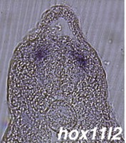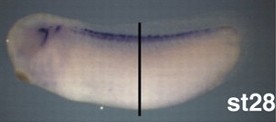 hox11l2 ( gene expression in Xenopus laevis embryo, assayed via in situ hybridization, NF stage 32, transverse section, mid-trunk region, dorsal up.