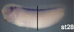 spry3 (sprouty homolog 3) gene expression in Xenopus laevis embryo, assayed via in situ hybridization, NF stage 28,transverse section, mid trunk region, dorsal up.