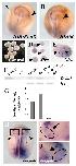 Fig. 1. Comparison of Xiro1, Delta1, Serrate, Notch, Hairy2A and Xslug expression. Embryos were fixed at late gastrula (stage 12.5-13) or mid-neurula stage (stage 18-19), and double or single in situ hybridization was performed for each gene. The stages and probes analyzed are indicated in each figure. Anterior is towards the top, and the sections are shown with the dorsal side towards the top. d, dorsal; v, ventral; orange arrowhead, neural crest. (A-E) Comparison of Xiro1 and Xslug expression at the late gastrula stage. (A) Initial visualization of a double in situ hybridization of Xiro1 (green). Xiro1 has a dorsal or neural domain of expression, and transcripts are also found in the preplacode domain outside of the neural plate (star). (B) Section of an embryo stained as in A. (C) Visualization of Xslug in purple in the same embryo as shown in A, where Xiro1 expression is in green. As the dorsal and placodal domain (star) are continuous, Xiro1 overlaps with the neural crest territory (orange arrowhead). (D) Section of the embryo shown in C. (E) Higher magnification of the box highlighted in C. The continuity between the neural domain and the preplacode domain (star) is visible. (F-J) In situ hybridization for Delta1 and Slug. (F,G) Late gastrula embryos were sectioned and divided in two groups. One group was stained for Delta1 (F) and the other for Xslug (G). Note that Slug expression, in the neural crest (orange arrowhead), coincides with the gap in the expression of Delta1 at the neural folds. (H,I) Double in situ hybridization for Delta1 and Xslug; note that the cells expressing Xslug (arrowhead) are surrounded by cells expressing Delta1 (arrows). (I) Higher magnification of the box highlighted in H. (J) Section of embryos along the plane indicated in I; note that the cells expressing Xslug are surrounded by Delta1 expression in the deep layer of the ectoderm. (K) Double in situ hybridization of Serrate (purple) and Xslug (green), note that Xslug expressing cells (orange arrowhead) are surrounded by Serrate expressing cells (arrows) in the anterior neural crest region. (L,M) Expression of Notch can be seen in the neural plate and it overlaps with Xslug expression at the border of the neural plate (arrowheads). (N-P) Expression of Hairy2A (N,O: green in left panel and purple in the right panel of N, and green in O) can be detected in the entire neural fold, including the domain were Xslug is expressed (orange arrowhead). The bracket indicates the region in which Slug and Hairy2A expression overlap. The arrow (N,O) indicates the expression of Hairy2A in the prospective posterior neural crest. (P) The expression of both genes persists at the late neurula stage. A summary of the expression of all these genes is represented as a whole mount in Q, and in a section in R.