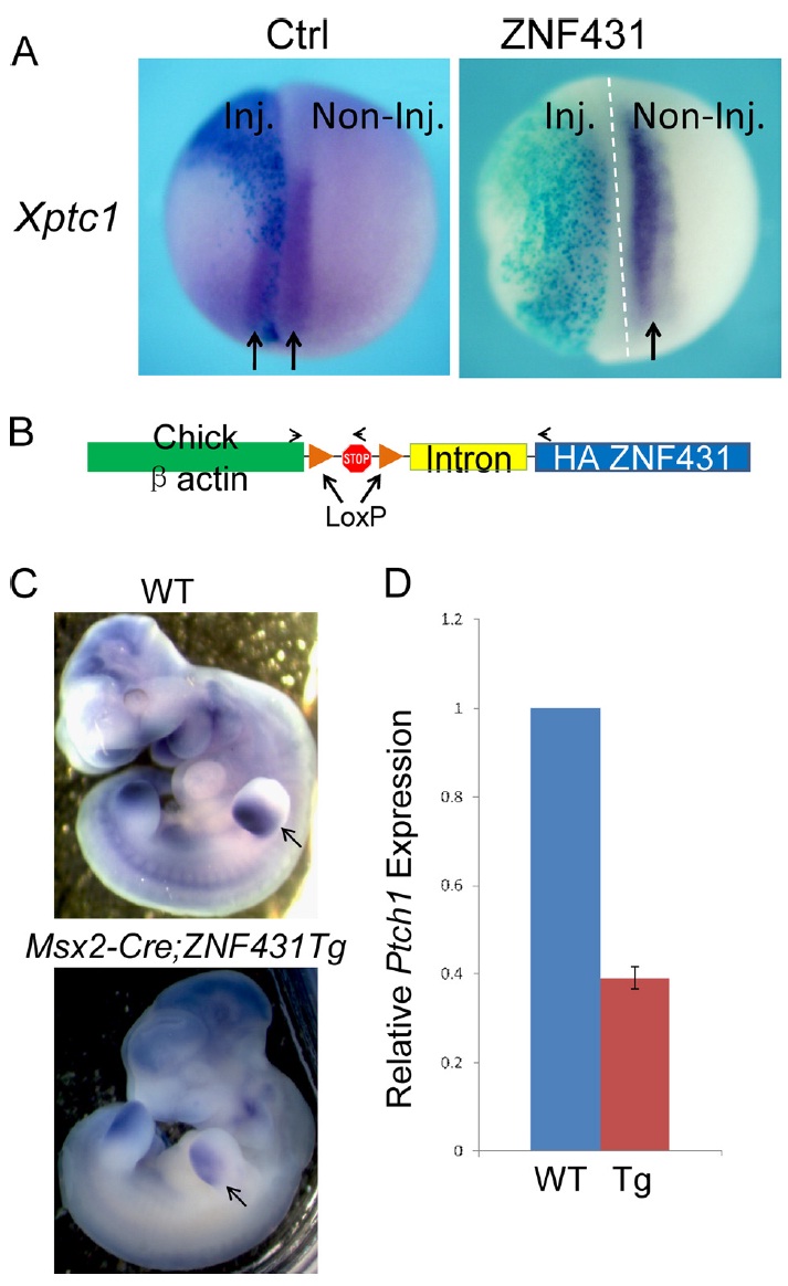 FIGURE 6. Overexpression of ZNF431 repressed Ptch1 expression in Xenopus