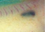 nphs1 (nephrin) gene expression in Xenopus laevis embryo, assayed via in situ hybridization, NF stage 28, lateral view, anterior right, dorsal up.