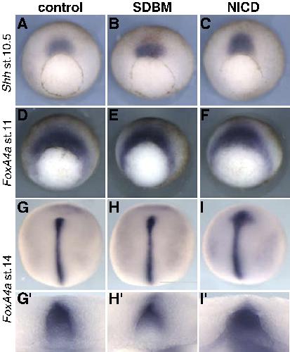 López, Notch activates sonic hedgehog and both are involved in the specification of dorsal midline cell-fates in Xenopus. 2003, Pubmed , Xenbase
