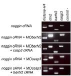 ig. S6. otx2, Barhl2, and casp3 transcripts are present in anteriorized ACs. RT-PCR analysis. casp3 and barhl2 transcripts are present in st 20 anteriorized ACs prepared in different conditions. Otx2 is used as an anterior neuroectodermal marker, Histone H4 is a positive control, and water is a negative control.