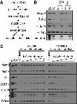 FIGURE 4. Large Mcm2-7 complexes form independently of Cdc7 kinase activity and are substrates of Cdc7 kinase. A, chromatin was isolated from egg extract containing 100 nm p27KIP1 and chromatin proteins released in 50 mm potassium acetate. Soluble protein was then separated by gel filtration. In parallel, whole extract was separated by gel filtration under identical conditions. Aliquots of chromatin C and extract E fractions were separated by SDS-PAGE and immunoblotted for Mcm2 and Mcm4. B, soluble chromatin proteins were isolated in 50 mm potassium acetate from extract optionally supplemented with 100 nm p27KIP1 or 100 μm PHA-767491, separated by SDS-PAGE and immunoblotted for the indicated proteins. An aliquot of untreated extract is also shown. C, chromatin from extract treated with p27KIP1 or PHA-767491 was prepared as in B and separated by gel filtration. Fractions were separated by SDS-PAGE and immunoblotted for the indicated proteins.