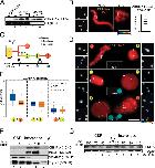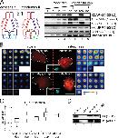 Figure 4. Human HJURP promotes loading of Xenopus CENP-A. (A) Outline of the chromatin assembly experiment. Mitotic chromosomes (M) and interphase nuclei (I) were assembled in mock- and CENP-Aâdepleted extracts containing in vitroâtranslated (IVT) myc-CENPA. (B) Nuclei and chromosomes were stained with antibodies against myc (top) and CENP-A (second from top), both color coded with a gradient as in Fig. 1 B. Insets 1â4 show that myc signals (red) overlap with CENP-A signals (green) in interphase nuclei of mock-depleted extracts (inset 2 and 6), whereas weak myc signals in CENP-Aâdepleted interphase nuclei (inset 4) are mostly background. DAPI staining (red) and biotin-dUTP (cyan) are shown in the bottom row. Bar, 10 µm. (C) IVT myc-CENP-A was added to a CENP-Aâdepleted extract along with sperm DNA and samples of the reaction were taken at the indicated times and analyzed by immunoblot with anti-myc and anti-RbAp48 as loading control. The time of calcium addition is considered t = 0. Cell cycle progression was monitored by chromosome morphology after DAPI staining (not depicted). (D) Immunoblot analysis of the extracts used for chromatin assembly in panel E. Antibodies against human and Xenopus HJURP were used to detect GST-HJURP (top) and endogenous xHJURP (bottom), respectively, whereas anti-CENPA was used to simultaneously detect myc-CENPA and endogenous CENP-A (middle). (E) Representative images of interphase nuclei from the indicated extracts stained with antiâCENP-A (green) and DAPI (red). Insets in the images of the first row show biotin-dUTP incorporation (cyan). In the images from the middle and bottom rows, CENP-A labeling has been color coded as in Fig. 1 B. In the bottom row, all centromeres from the nuclei presented above are shown at higher magnification. Bar, 10 µm. (F) Graph showing the loading efficiency of CENP-A in the indicated extracts compared with a mock-depleted extract. Bars represent mean ± SE from two independent experiments. (G) GST-HJURP interacts with myc-CENPA and endogenous CENP-A. Analysis of an immunoprecipitation reaction with anti-GST from an egg extract containing myc-CENPA and either GST alone or GST-HJURP. Aliquots (1.5%) from input and flow-through (FT) fractions were also analyzed. |
