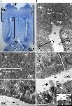 Fig. 1. Ultrastructural analysis of the anterior telencephalon. a Horizontal slice of the telencephalon of larval X. laevis stained with Methylenblue-Azur II. b Transmission electron microscopy of the anterior part of the lateral telencephalic ventricles with its PVZ and the posterior part of the granule cell layer of the OB (b1). Various electron micrographs were assembled into a photo montage to obtain this overview. The dotted line indicates the approximate border between the PVZ and the granule cell layer of the OB. The brackets indicate the approximate location of the areas shown at higher magnification in b2 through b4. Anterior part of the PVZ and adjacent granule cell layer of the OB (b2). Cell divisions are frequent in the PVZ. Note the cell with decomposed nuclear envelope and condensed DNA in form of chromosomes (asterisk). Medial part of the PVZ (b3) and lateral part of the PVZ (b4). The brackets in b2through b4 include the cell layers of the anterior, medial, and lateral PVZ, respectively. b5 shows a higher magnification of cells in direct contact with the lumen of the lateral ventricles. Two cells are in mitosis (asterisks). The white arrows indicate accumulations of mitochondria very close to the ventricular lumen. The black arrow shows a large cellular protrusion into the ventricle. The area included in the bracket is shown at higher magnification in b6. Note the multivesicular protrusion into the ventricle (arrowhead) and the single cilium extending into the cerebrospinal fluid (arrow). Abbreviations: ON olfactory nerve, OB olfactory bulb, PVZ periventricular zone, TEL telencephalon, CP choroid plexus, lv lateral ventricle, gcl granule cell layer |