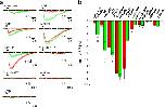 Fig. 6. Responsiveness of OB and PVZ cells to purinergic receptor agonists. a Mean [Ca2+]i transients (±SEM) of all clearly identifiable responsive cells of an OB (red traces) and a PVZ (green traces). Traces originate from more than one tissue slice. b The mean peak amplitude of agonist-induced responses (±SEM) of cells of the OB and the PVZ were compared (red columns OB cells, green columns PVZ cells). [adenosine (100 μM), data from 170 OB cells and 236 PVZ cells from 6 slices of the anterior telencephalon; ADP (100 μM), 245 OB cells and 154 PVZ cells from three slices; ATP (50 μM), 1566 OB cells and 1303 PVZ cells from 28 and 23 slices, respectively; 2MeSATP (100 μM), 378 OB cells and 285 PVZ cells from five slices; BzATP (50 μM), 213 OB cells and 93 PVZ cells from four and two slices, respectively; α,β-MeATP (50 μM), 310 OB cells and 198 PVZ cells from six and three slices, respectively; β,γ-MeATP (100 μM), 387 OB cells and 318 PVZ cells from seven and six slices, respectively; uridine (100 μM), 275 OB cells and 308 PVZ cells from six slices; UTP (100 μM), 335 OB cells and 324 PVZ cells from five slices]. (*p < 0.05 and **p < 0.01; unpaired t test). Abbreviations: ADP adenosine-5′-diphosphate, ATP adenosine-5′-triphosphate, UTP uridine-5′-triphosphate; α,β-MeATP α,β-methylene-ATP, β,γ-MeATP β,γ-methylene-ATP, 2MeSATP 2-methylthio-ATP, BzATP, 3′-O-(4-benzoyl)benzoyl ATP |