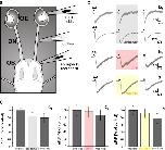 Fig. 8. Impact of the telencephalic purinergic system on the immediate processing of olfactory information in OB cells. a Schematic representation of a nose–brain preparation of larval X. laevis. The black rectangle indicates the area of the telencephalon monitored in the Ca2+ imaging experiments. b The mean response (±SEM) of all responsive cells of an OB (n = 45 cells) upon epithelial application of an odorant mixture (15 amino acids, each at 100 μM; see “Materials and methods” section) was not affected by continuous OB stimulation with 5 μM 2MeSATP (b1, upper row). Compare the trace in the gray-shaded area (amino acid-induced responses after 10 min of 2MeSATP perfusion) with the traces to its left (amino acid-induced responses prior to 2MeSATP perfusion) and right (amino acid-induced responses after 5 min washout of 2MeSATP). The lower row of b1 shows the amino acid-induced [Ca2+]i transient of a randomly chosen individual cell of the same slice. Also, the mean response (± SEM) of all amino acid-responsive cells of an OB (n = 23 cells) was not affected by continuous OB stimulation with 100 μM ATP (b2). Compare the trace in the light red-shaded area (amino acid-induced responses after 10 min of ATP perfusion) with the traces to its left (amino acid-induced responses prior to ATP perfusion) and right (amino acid-induced responses after 5 min washout of ATP). Prolonged application of 200 μM suramin did also not disrupt the mean response (±SEM) of all amino acid-responsive cells of an OB (n = 35 cells; b3). Compare the trace in the yellow-shaded area (amino acid-induced responses after 5 min of suramin perfusion) with the traces to its left (amino acid-induced responses prior to suramin perfusion) and right (amino acid-induced responses after 5 min washout of suramin). c The mean peak responses (±SEM), expressed as percent of control response to an epithelial application of 100 μM amino acid mixture (200 OB cells from four nose–brain preparations) in control conditions (dark gray columns) and after 5 to 10 min in bath solution with 5–20 μM 2MeSATP (light gray column) are shown in c1. The mean peak responses ± SEM, expressed as percent of control response to an epithelial application of 100 μM amino acid mixture [78 OB cells/5 slices for ATP (100 μM) and 81 OB cells/4 slices for suramin 200 μM)] in control conditions (dark gray columns) and after 5 to 10 min in bath solution with ATP or suramin (light red and yellow column) are respectively given in c2 and c3. Abbreviations: OE olfactory epithelium, ON olfactory nerve, OB olfactory bulb, AA amino acid mixture |
