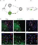 Fig. 8. Mosaic analysis confirms ciliary defects. (A) FITC-labelled foxi1e ATG MO was injected at the one-cell stage and fluorescence confirmed at stage 9. Small grafts from morphant embryos were taken from the ventral animal pole (V) at stage 9 and grafted onto the ventral animal pole of wild-type embryos. Embryos developed until stage 28, when the morphant tissue could be distinguished from wild-type tissue in the epidermis by FITC fluorescence. D, dorsal. (B) A transplanted embryo at stage 28 shows tissue injected with MO (green), v1a-expressing cells (red) and ciliated cells (blue). Lower panels show higher-magnification images of the upper panels. Defective ciliated cells (arrowheads) are evident within the transplanted region, but ciliated cells (arrows) at the border of the transplanted tissue and adjacent to ionocytes seem normal. Note that the highlighted ciliated cells (arrows) at the border are green owing to the presence of the MO in these cells and yet the cilia appear normal. The white line in the v1A/AcTub images highlights the border between morphant and wild-type tissue. Scale bars: 50 μm (upper panels); 25 μm (lower panels).
