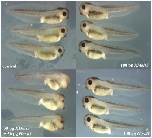 Figure 5. Synergistic effect between Hoxd1 and XMeis3 in ectopic expression.