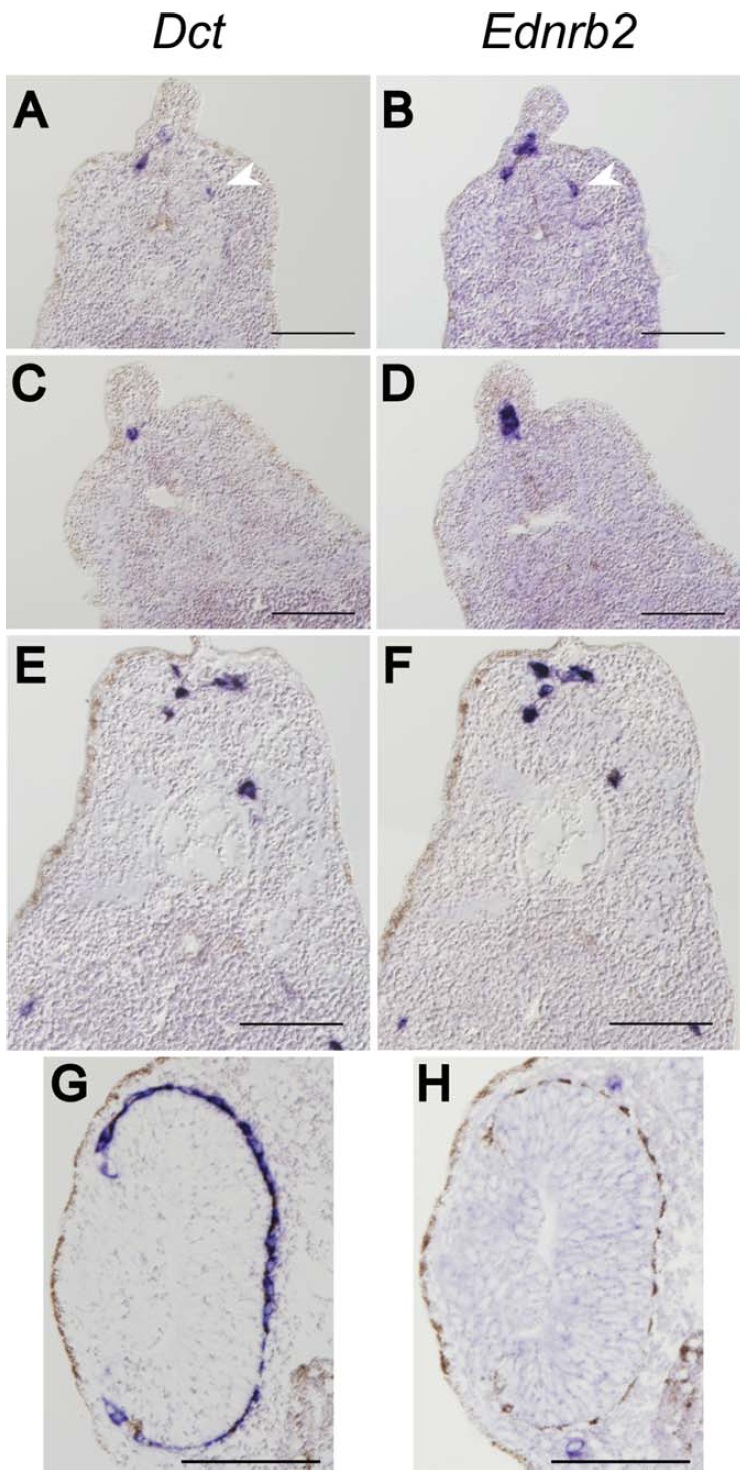 Fig. 2. Expression patterns of Ednrb2 and Dct AâD: Serial sections of an embryo at stage 26.