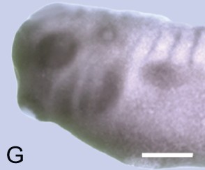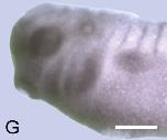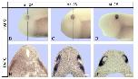 hmx3 (H6 family homeobox 3) gene expression in Xenopus laevis embryos, NF stage 26, as assayed by in situ hybridization,lateral view, anterior right, dorsal up.