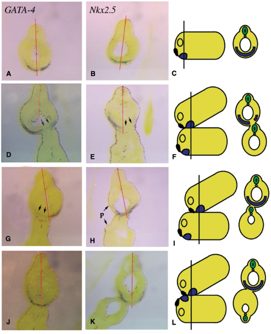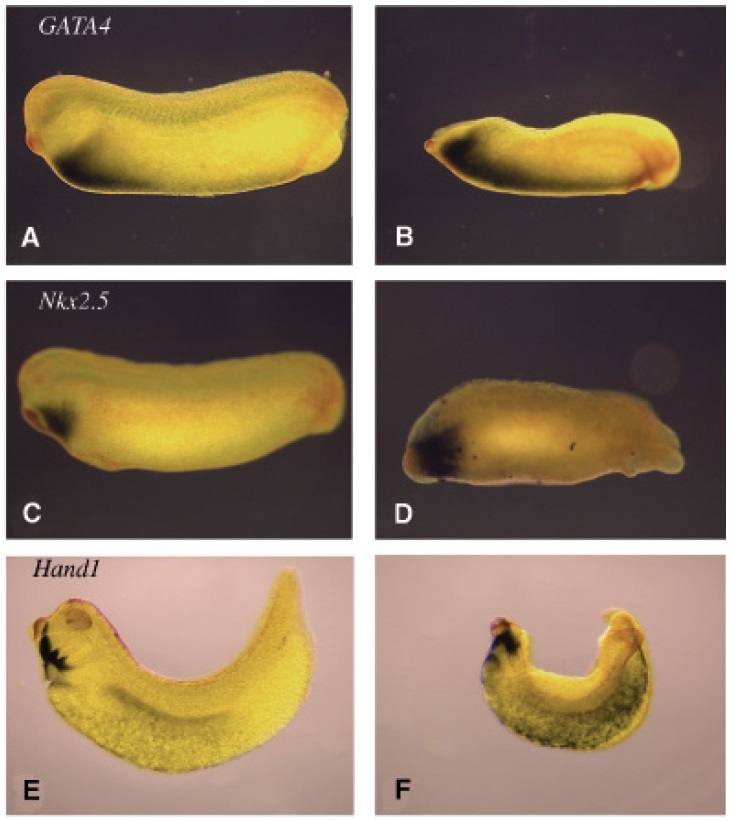 Fig. 4 The expression domains of GATA-4, Nkx2.5, and Hand1 are