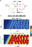 Figure 3. Cell-cycle equations exhibit chaotic behavior with extreme sensitivity to initial conditions.(A) Simulations with two different calcium wave speeds in 1 mm embryos, with colormap showing the concentration of doubly phosphorylated Cyclin B - Cdk1 complex. Simulation cell is 1D with no flux boundary conditions. (B) Simulation in a large (6 mm) 1D embryo with periodic boundary conditions. (C) The space-time correlation function is computed using the mean-centered values in (B) between min. and min. (inset) The correlation length is computed to be mm at .