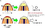 Figure 8. Model for Wnt/β-catenin and nerve signals in early limb regeneration in Xenopus froglets.(A) Successful blastema formation in the intact forelimb of the hsDkk1 froglet. Wnt/β-catenin signaling (presumably mediated by wnt-3a in the epidermis) induces fgf-8 expression in the epidermis. Induction of Dkk1GFP expression by heatshock diminishes epidermal fgf-8 expression. However, nerve signals released from the nerves around the limb stump have some redundant function with FGF-8 and/or the product(s) of another Wnt downstream gene(s), whereas Dkk1GFP does not markedly affect the function of the nerve signals. The nerve signals can substitute for the role of the Wnt downstream gene, so that the limb stump can continue the blastema formation process and form a spike, even after blockage of Wnt/β-catenin signaling. (B) Interrupted blastema formation in the half-denervated forelimb of an hsDkk1 froglet. When the limb stump is partially denervated, the amount of nerve signals is thought to be around half of that in an intact limb stump. This level of nerve signals is insufficient to substitute for the role of the Wnt downstream gene. Thus, most of the limb stumps cannot continue the blastema formation process, resulting in no regeneration, after blockage of Wnt/β-catenin signaling. Considering the redundant function of the nerve signals and a Wnt downstream gene, the nerve signals may be mediated by another member of the FGFs. Scissors indicate the amputation plane. nv, nerves; ct, cartilage.