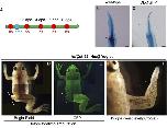 Figure 2. Refined procedure for heat-shock-inducible inhibition of Wnt/b-catenin signaling in Xenopus laevis. (A) Map of the heat- shock-inducible Dkk1GFP transgene with lens labeling. Details are described in Experimental Procedures. The bright RFP variant, tdTomato under control of the 2.2-kb crystallin promoter, was introduced downstream of hsp70-Dkk1GFP. (B) Prior to heatshock, a tadpole containing the transgene could be recognized by the tdTomato fluorescence in its lenses. After heatshock, ubiquitous Dkk1GFP expression was induced in the lens-labeled tadpoles. Note that the tdTomato protein in the lens was detected through a GFP filter as well as through an RFP filter. (C) Dorsal view of the lefthindlimb bud at stage 52. (D) Induction of hsDkk1 expression at stage 52 completely blocked regeneration of the hindlimb bud. Nothing was regenerated from the amputation level. Lines indicate the estimated amputation planes (knee level for the hindlimb bud). Arrows indicate the lens region of tadpoles. Scale bar = 1 mm for (B) and (D) and 250 m for (C). See also Figure S1.