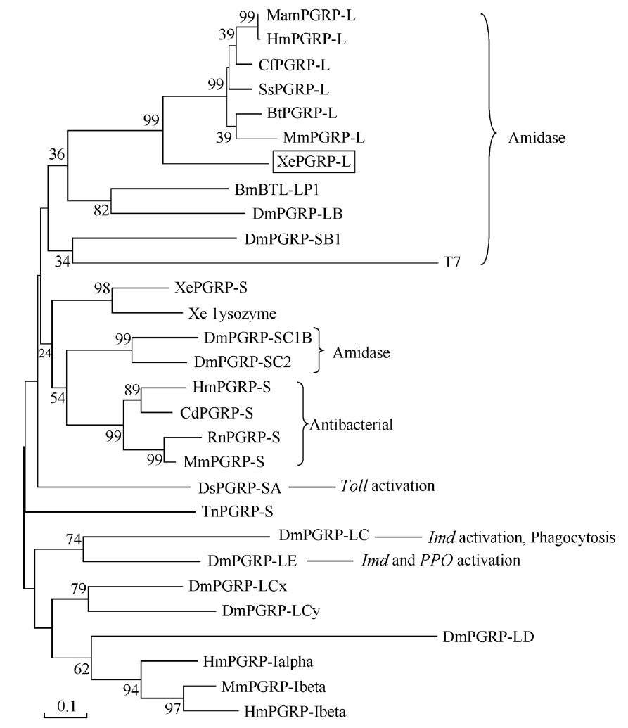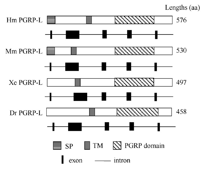 Fig. 1 Comparing the XtPGRP-L protein and gene structure