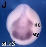 Fig. 2. Gene expression of XSufu in Xenopus embryos. (AâC) RT-PCR of whole embryos (A) and embryonic explants (B,C). Histone H4 was used as RNA loading control. DMZ, dorsal marginal zone; VMZ, ventral marginal zone. (DâM) Whole-mount in situ hybridization of embryos shown in dorsal (D,E), anterior (F,I,J), and lateral views (KâM). Panels (G) and (H) are transversal sections of embryo in (I). anp, anterior neural plate; ba, branchial arch; ea, ear; ey, eye; fb, forebrain; mhb, midâhindbrain boundary; nc, neural crest; ng, neural groove; np, neural plate; ppp, panplacodal primordium, tb, tail bud.