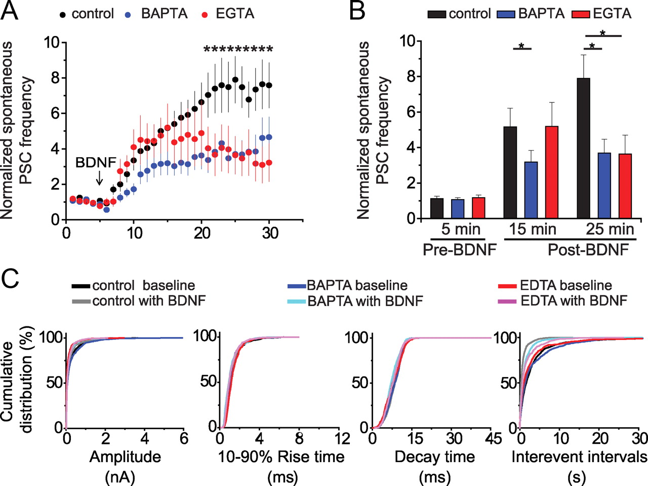 Postsynaptic TRPC1 function contributes to BDNF-induced synaptic potentiation at the developing neuromuscular junction.