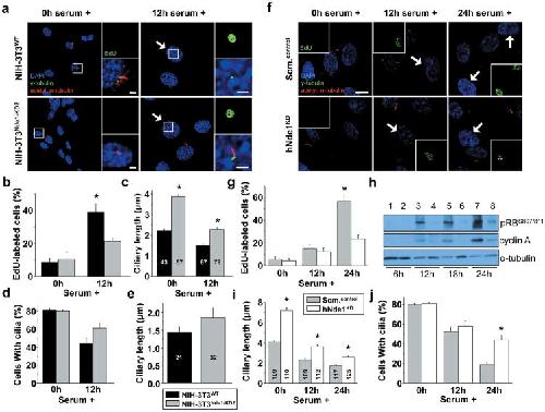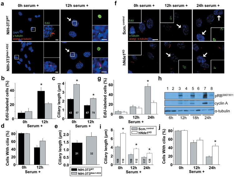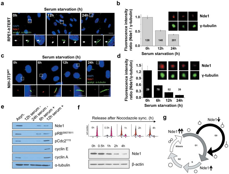 Nde1-mediated inhibition of ciliogenesis affects cell cycle re-entry.