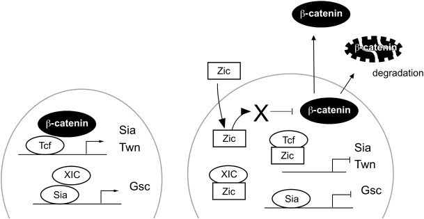 Fig. 8. Hypothetical mechanism underlying Zic3-mediated inhibition of Wnt/β-catenin signaling.