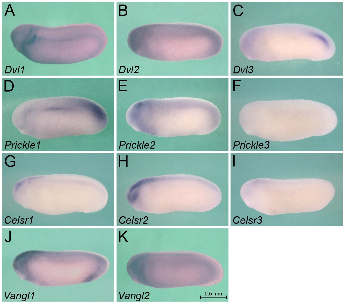 Genes referenced: celsr1 celsr2 celsr3 ctnnb1 dvl1 dvl2 dvl3 fzd1 fzd10 fzd2 fzd3 fzd4 fzd5 fzd6 fzd7 fzd8 fzd9 prickle1 prickle2 prickle3 ror2 ryk vangl1 vangl2 wnt1 wnt10a wnt10b wnt11 wnt11b wnt16 wnt2b wnt3a wnt4 wnt5a wnt5b wnt6 wnt7a wnt7b wnt7c wnt8a wnt8b wnt9a wnt9b wnt9b.2