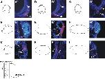 Fig. 4. Examples of DiI or DiO labeled cells and their fates. The positions of DiI (red) or DiO (green) labeled cells in neural plate stage embryos (stage 13/14; A, B, C), at the end of neurulation (stage 19/20; D, E, F) and at early tail bud stage (stage 23/24; G, H, I) are shown. Lateral views in B, C, E, F, H and I, frontal view in A, D and G. Their fates were identified in transverse cryosections at late tail bud stage (stage 33/34) (Aâ²âIâ²). Nuclei are stained with DAPI. Levels of sections are indicated in the diagram below. In neural plate stage embryos, cells at the border of the outer neural folds (A) give rise to cells of the olfactory placode (Aâ²), whereas labeled cells in the outer neural folds (B) were later identified in the trigeminal ganglion (Bâ²), and labeled cells located immediately ventral to the neural folds (C) were found in the ganglion of anterodorsal lateral line nerve (Câ²). At the end of neurulation, a group of cells labeled just dorsal to the cement gland (D), contributes to the olfactory placode (Dâ²); cells labeled more posterior in a dorsal position (E) contribute to the middle lateral line and otic placodes (Eâ²); whereas cells labeled more ventral (F) give rise to the posterior lateral line placode (Fâ²). At early tail bud stage, cells located in the most anterior part of the non-neural ectoderm (G) give rise to the adenohypophysis (Gâ²); labeled cells within the anteroventral part of the non-neural ectoderm (H) contribute to the lens (Hâ²); while cells located more posterior and dorsal (I) developed into a part of the glossopharyngeal epibranchial placode (Iâ²). Abbreviations: gAD: ganglion of anterodorsal lateral line placode; gV: trigeminal ganglion; n: notochord; nt: neural tube; pA: adenohypophyseal placode; pIX: glossopharyngeal epibranchial placode; pL: lens placode; pOL: olfactory placode; pOt: otic placode; pM: middle lateral line placode; pP: posterior lateral line placode; r: retina; s: somite; vOt: otic vesicle.