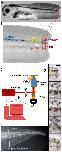 Figure 4. Phenotypes of tails damaged at different sites along the AP axis of the spinal cord.Dorsal is up and posterior is to the right in all images. All tails were damaged at stage 40 and are shown at stage 48. Orange arrowheads point to the location of laser damage; the blue line indicates the amputation plane. Scale bar = 1 mm. (A) The typical upward bend phenotype of tails damaged in the shoulder spinal cord (shSC). (B) Regenerate for tail damaged in the posterior spinal cord (postSC). (C) Image of the more severe phenotype caused by ablation of the anterior spinal cord (antSC). (D) Dorsal view of the tail shown in C illustrating the lateral bending of tails damaged in the antSC. (E and F) A tail damaged at two sites, the antSC and the shSC. This tail shows both characteristics of tails damaged at either shSC or antSC, including a simple upward bend, and LR bending. (G) The “pigtail” spiraling at this tail tip is unique to tails that have been damaged at both antSC and shSC.