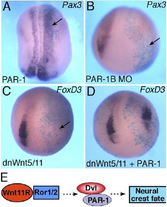 Neural crest specification by noncanonical Wnt signaling and PAR-1.