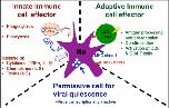 Figure 3. Schematic view of the complex role of macrophages in Xenopus host defenses against RV. As innate immune cell effectors, macrophage can acquire viral antigen by direct infection, pinocytosis of opsonized viruses or phagocytosis of infected cells, as well as release cytokines, chemokines and toxins that contribute to limiting the infection. As an adaptive immune cell effector, macrophages process and present viral antigens through MHC class I and class II pathways, up-regulated co-stimulatory molecules (B7, CD40) and activate anti-RV CD8 and CD4 T cells. Finally, macrophage can harbor quiescent RV in asymptomatic frogs.