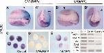 Figure 1. Analysis of δNp63 expression in developing embryos. A: Analysis of δNp63 temporal expression pattern. Reverse transcriptase-polymerase chain reaction (RT-PCR) was performed on total RNA extracted from embryos at different embryonic stages. EF1α amplification was used as control. BâP: Whole-mount in situ hybridization analysis of spatiotemporal δNp63 expression. B: Lateral view. C,D,JâL: Lateral view, anterior on the right, dorsal at the top. E,MâP: Anterior view, dorsal at the top. F,H,I: Dorsal view, anterior on the right. G,Mâ²âPâ²: Transversal sections. B,F,G,H: In situ hybridization for δNp63. C,D: Double in situ hybridization for δNp63 (purple) and XK81a (turquoise). G: Small arrow, δNp63 expression in the internal layer of the ectoderm. Inset, δNp63 (purple) and XK81a (turquoise). (H) Small arrow, two medial stripes of δNp63 expression. E,N,Nâ²: δNp63 (purple) and Sox2 (turquoise). I,J,M,Mâ²: δNp63 (purple) and FoxD3 (turquoise). L,P,Pâ²: δNp63 (purple) and Dlx5 (turquoise). K, O, Oâ²: In situ hybridization for Six1. Asterisk, δNp63 expression in the prospective epidermis. Red star, ventral anterior prospective epidermis with no δNp63 expression. Arrowhead, δNp63 expression in the most external limit of the neural crest overlapping with Six1 and Dlx5 expression. Large arrow, anterior δNp63 expression overlaps with Six1 and Dlx5. i.l., internal layer; e.l., external layer. An, animal; Vg, vegetal; D, dorsal; V, ventral; np, neural plate.Download figure to PowerPoint