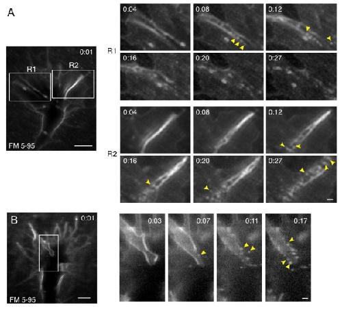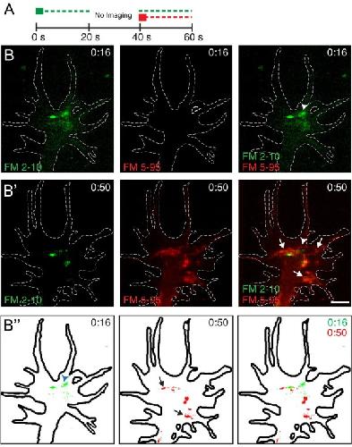 Diefenbach, Membrane recycling in the neuronal growth cone revealed by FM1-43 labeling. 1999, Pubmed