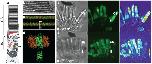 Figure 4. Aberrant mobility of RhoP23H-EGFP measured using fluorescence recovery after photobleaching.(a) Representative low magnification CSLM images of a live rod expressing soluble EGFP show the fluorescence distribution (merged with the DIC image, left) and with the region of interest (ROI) indicated (white box). The cell (P, pretreatment) was photobleached in the ROI (0 s) and the recovery was followed for the indicated time (in seconds). (b–f) Live rods expressing Rho-EGFP or RhoP23H-EGFP were photobleached in different regions and images from different times in the recovery period are shown at higher magnification. The pre-bleach sample is shown as a merge (fluorescence with DIC, left) and with fluorescence alone (P) followed by representative images immediately after bleach (0 s) and 5 s and 115 s post-bleach. The ROI is boxed in each image. Various compartments of the cells were photobleached: (b) base of the OS in cells expressing Rho-EGFP; (c) near the base of the OS in a region with no fluorescent foci in a cell expressing RhoP23H-EGFP; (d) IS in a cell expressing RhoP23H-EGFP; (e) in the OS with fluorescent RhoP23H-EGFP foci; (f) in an axial view of the OS with fluorescent RhoP23H-EGFP foci. (g) The photobleaching recovery profile of panel (b). Integrated fluorescence of Rho-EGFP in the ROI defined in (b), normalized to the integrated fluorescence of the same region in the pre-photobleached image (closed circles) compared to the fluorescence in a neighboring region (open triangles). (h) Integrated fluorescence recovery after photobleaching in regions of RhoP23H-EGFP that showed recovery following photobleaching (c and d). Averaged recovery profiles of photobleached areas in the two groups (c and d) were normalized in order to compare the half-time recovery of the mobile fraction of mutant opsin participating in recovery after photobleaching. Rho-EGFP (red trace) is included for comparison. (i) The photobleaching recovery profile of panel (e) from the ROI (closed circles) and a neighboring area (open triangles). There is no significant change in the fluorescence of the foci on the left of photobleaching box during the recovery period (open triangles). Scale bars, 5 µm.