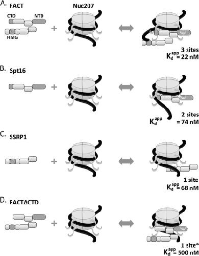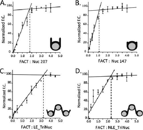 FIGURE 5. Stoichiometry and positions of FACT within tri-nucleosome arrays.