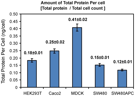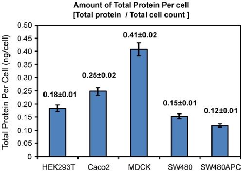Figure 5. Total protein per cell for each cell line.Error bar: Root Mean Squared Error (SEM).