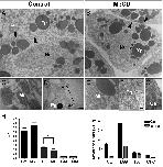 Fig. 3. MβCD-induced cholesterol depletion does not affect overall cell ultrastructure, but alters the lipid droplet vesicles. Representative transmission electron microscopy photomicrographs depicting cell ultrastructure from the equatorial dorsal side of control and MβCD-injected embryos. (A) In both control and MβCD-injected embryos, neighbor cells displayed a preserved plasma membrane (Pm), and contact between cells can be observed (arrows and arrowheads, A, B, D and F). Nuclei (Nu) are also evident, showing condensed chromatin. Several yolk platelets (Yp) of different sizes as well as lipid droplets (Ld) are typically found in both control and MβCD-injected embryos. Mitochondria (Mt, C and E), pigment granules (Pg, D) and Golgi apparatus (Ga, G) were also evident in control and MβCD-injected embryos. (H) Morphometric analyses revealed a decreased area in lipid droplets of MβCD-injected embryos, while yolk platelets and mitochondria were unaltered. Control yolk platelets (CY), MβCD yolk platelets (MY), control lipid droplets (CL), MβCD lipid droplets (ML), control mitochondria (CM), MβCD mitochondria (MM). (I) The composition of the lipid droplets was also altered, as seen by thin-layer chromatography of neutral lipids: cholesterol ester (CE), triacylglycerol (TAG), cholesterol (CHO) and fatty acids (FA) were decreased after MβCD injection. Scale bars: A: 6 μm, B: 5 μm, C, E, G: 0.2 μm, D: 0.6 μm, F: 0.1 μm.