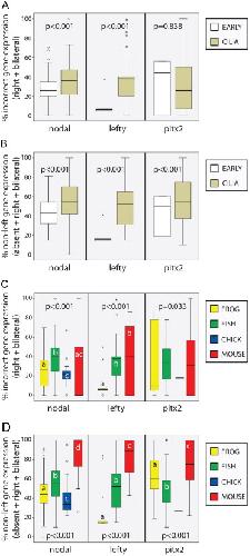Relationship between asymmetric nodal expression and the direction of embryonic turning.